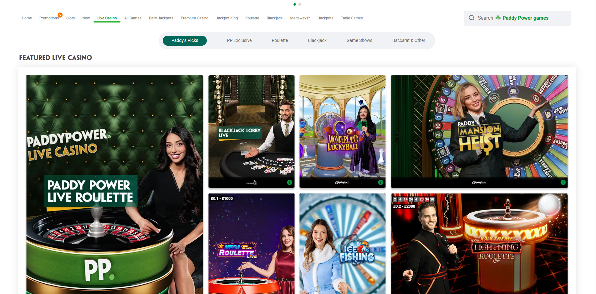 Live Game Shows92% – 96%Paddy Power